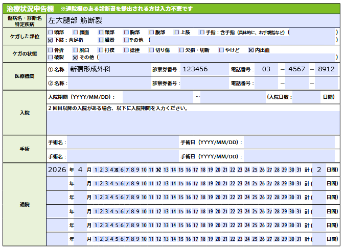 ※診断書等は不要です。